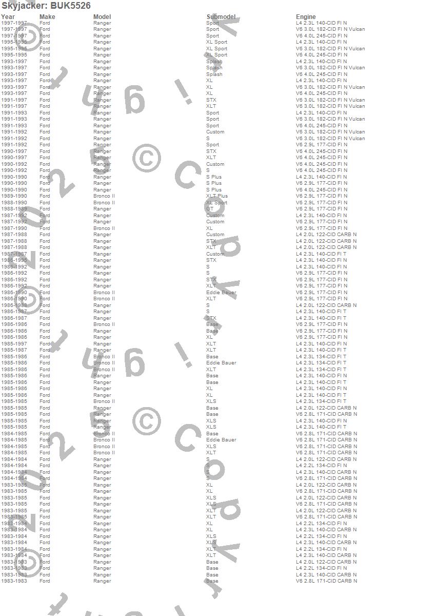 Bronco II, Ranger, Ford, 1997, 1996, 1995, 1994, 1993, 1992, 1991, 1990, 1989, 1988, 1987, 1986, 1985, 1984, 1983
