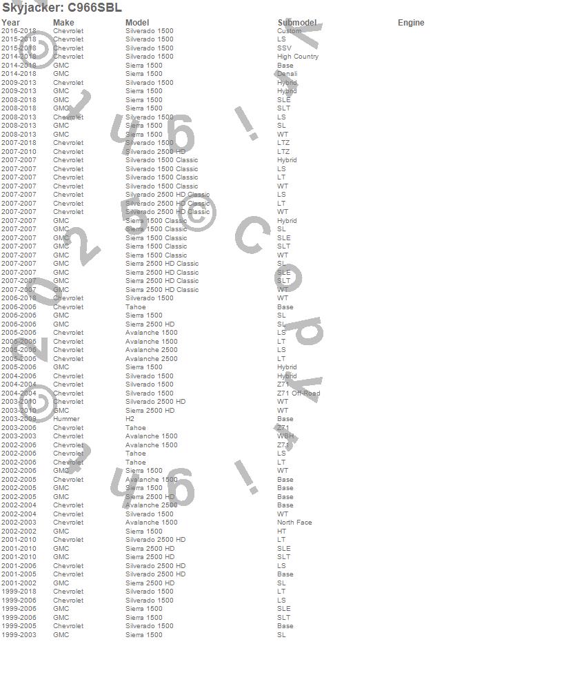 Avalanche 1500, Avalanche 2500, H2, Sierra 1500, Sierra 1500 Classic, Sierra 2500 HD, Sierra 2500 HD Classic, Silverado 1500, Silverado 1500 Classic, Silverado 2500 HD, Silverado 2500 HD Classic, Tahoe, Chevrolet, GMC, Hummer, 2018, 2017, 2016, 2015, 2014