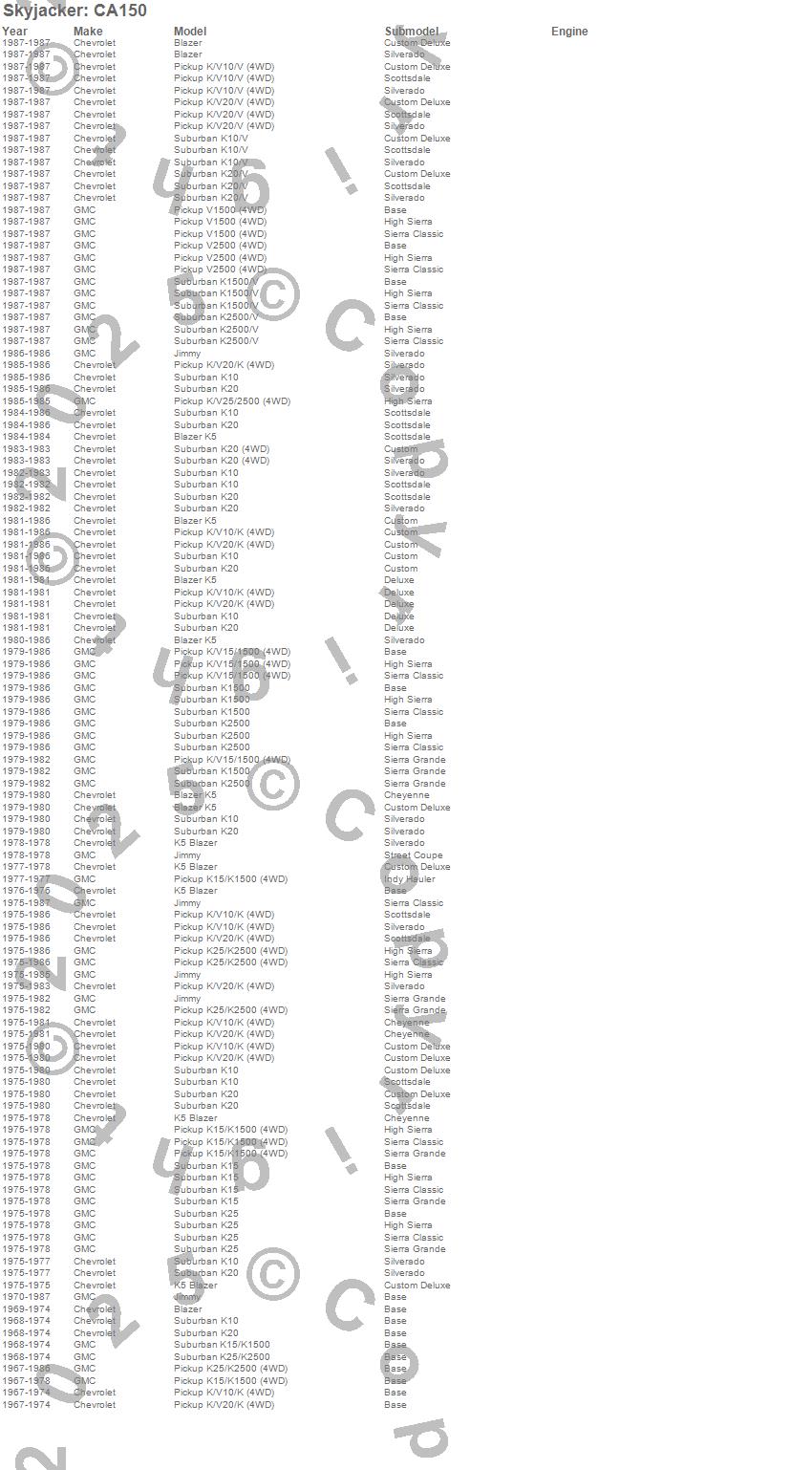 Blazer, Blazer K5, Jimmy, K10 Pickup, K10 Suburban, K15 Suburban, K15/K1500, K15/K1500 Pickup, K15/K1500 Suburban, K1500 Pickup, K1500 Suburban, K20 Pickup, K20 Suburban, K25 Pickup, K25 Suburban, K25/K2500 Pickup, K25/K2500 Suburban, K2500 Pickup, K2500 Suburban, K5 Blazer