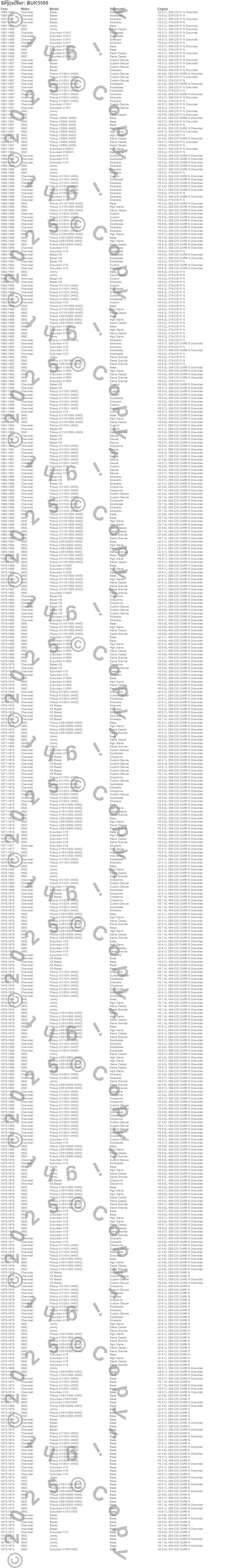Blazer, Blazer K5, Jimmy, K10 Pickup, K10 Suburban, K15 Suburban, K15/K1500 Suburban, K1500 Pickup, K1500 Suburban, K20 Pickup, K25 Pickup, K25/K2500 Pickup, K2500 Pickup, K5 Blazer, V10 Suburban, V1500 Suburban, V20 Pickup, V2500 Pickup, Chevrolet, GMC