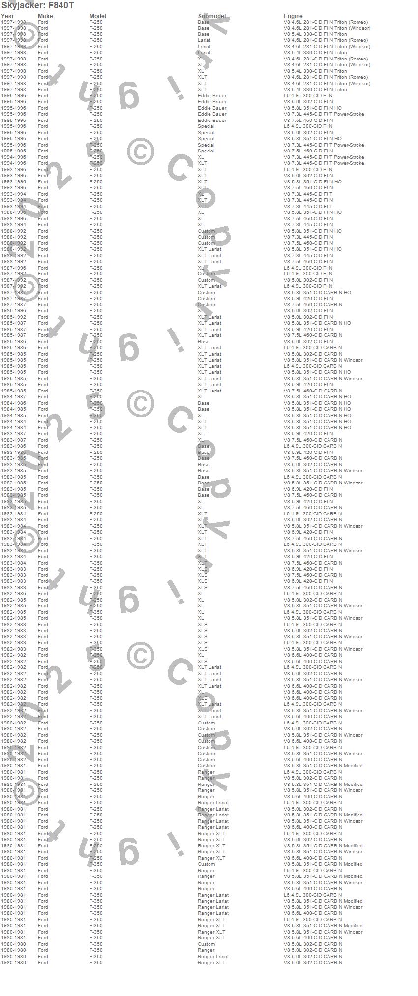 F-250, F-350, Ford, 1998, 1997, 1996, 1995, 1994, 1993, 1992, 1991, 1990, 1989, 1988, 1987, 1986, 1985, 1984, 1983, 1982