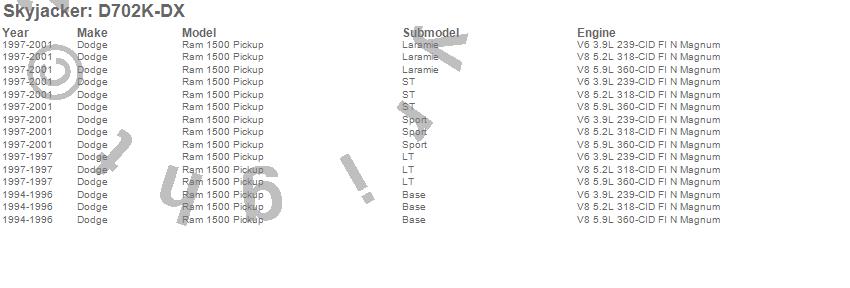 Skyjacker D702K-DX Long Arm Suspension Lift Kit 7 in. Lift - Incl Front Coil Spring - Transmission Mount - Rear Add-A-Leaf - U Bolt Kit - Skid Plate - Steering Stabilizer - Vacuum Tubing - Indexing Ring