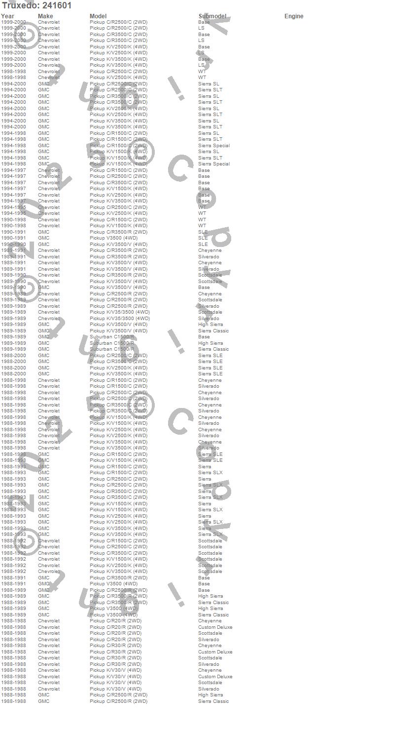 C1500 Pickup, C2500 Pickup, C3500 Pickup, K1500, K1500 Pickup, K2500 Pickup, K3500 Pickup, R20 Pickup, R2500 Pickup, R30 Pickup, R3500 Pickup, V30 Pickup, V3500 Pickup, Chevrolet, GMC, 2000, 1999, 1998, 1997, 1996