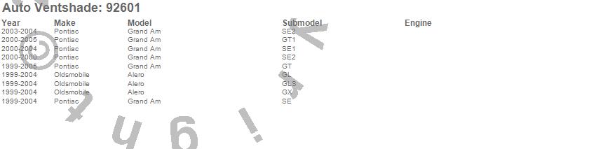 Below is an abbreviated list of applications for the Ventvisor Deflector 2 pc..