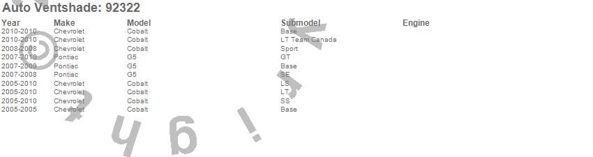 Below is an abbreviated list of applications for the Ventvisor Deflector 2 pc..