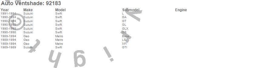 Below is an abbreviated list of applications for the Ventvisor Deflector 2 pc..