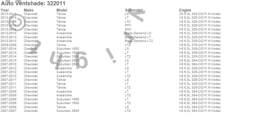 Avalanche, Suburban 1500, Suburban 2500, Tahoe, Chevrolet, 2014, 2013, 2012, 2011, 2010, 2009, 2008, 2007