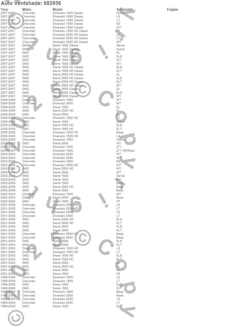Below is an abbreviated list of applications for the Chrome Ventvisor Deflector 2 pc..