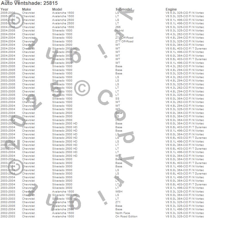 Avalanche 1500, Avalanche 2500, Silverado 1500, Silverado 1500 HD, Silverado 2500, Silverado 2500 HD, Silverado 3500, Chevrolet, 2006, 2005, 2004, 2003, 2002
