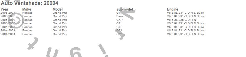Below is an abbreviated list of applications for the Carflector Stone/Bug Deflector.