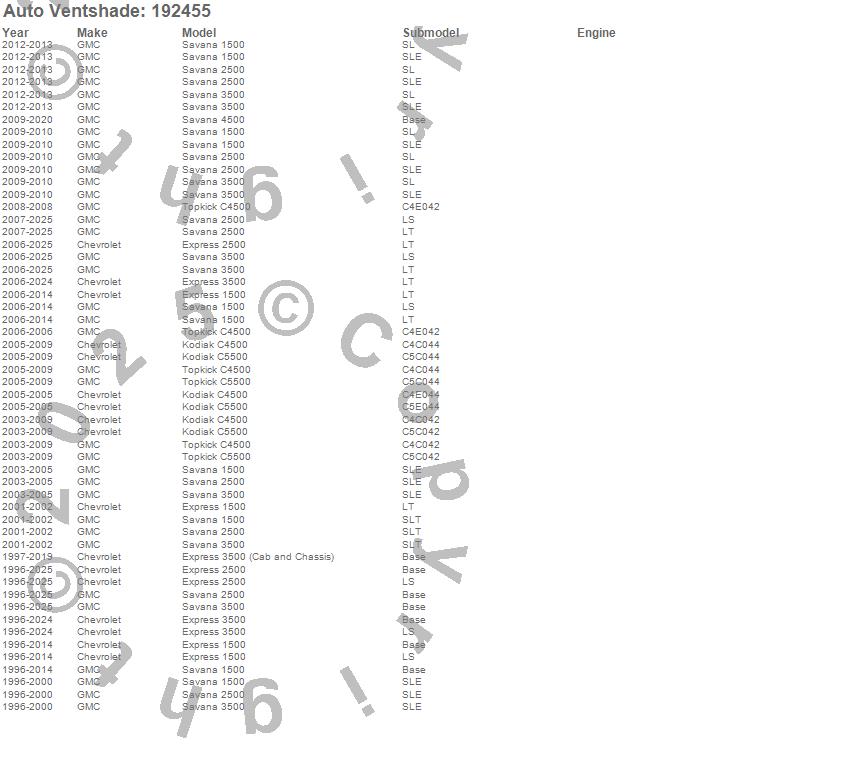 Below is an abbreviated list of applications for the Ventvisor In-Channel Deflector 2 pc..