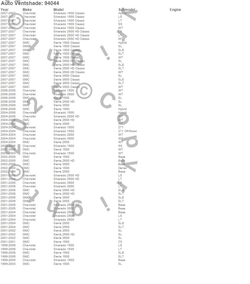 Below is an abbreviated list of applications for the Ventvisor Deflector 4 pc..