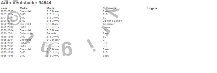Below is an abbreviated list of applications for the Ventvisor Deflector 4 pc..