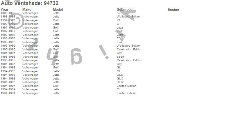 Below is an abbreviated list of applications for the Ventvisor Deflector 4 pc..