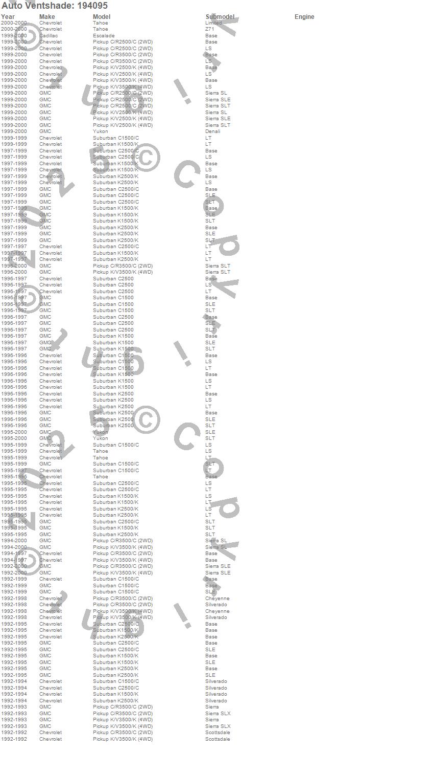 C1500 Suburban, C2500 Pickup, C2500 Suburban, C3500 Pickup, Escalade, K1500 Suburban, K2500 Pickup, K2500 Suburban, K3500 Pickup, Tahoe, Yukon, Cadillac, Chevrolet, GMC, 2000, 1999, 1998, 1997, 1996, 1995