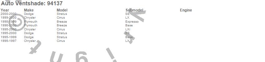 Below is an abbreviated list of applications for the Ventvisor Deflector 4 pc..