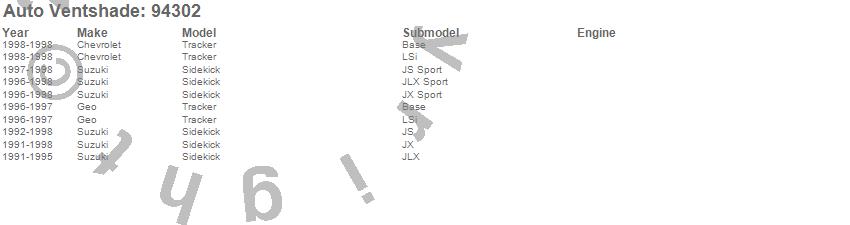 Below is an abbreviated list of applications for the Ventvisor Deflector 4 pc..