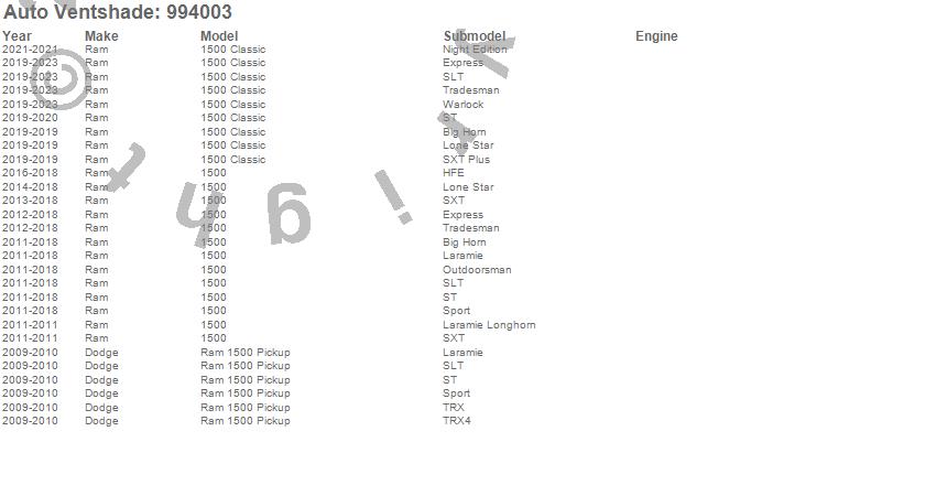 Below is an abbreviated list of applications for the Ventvisor Low Profile Deflector 4 pc..