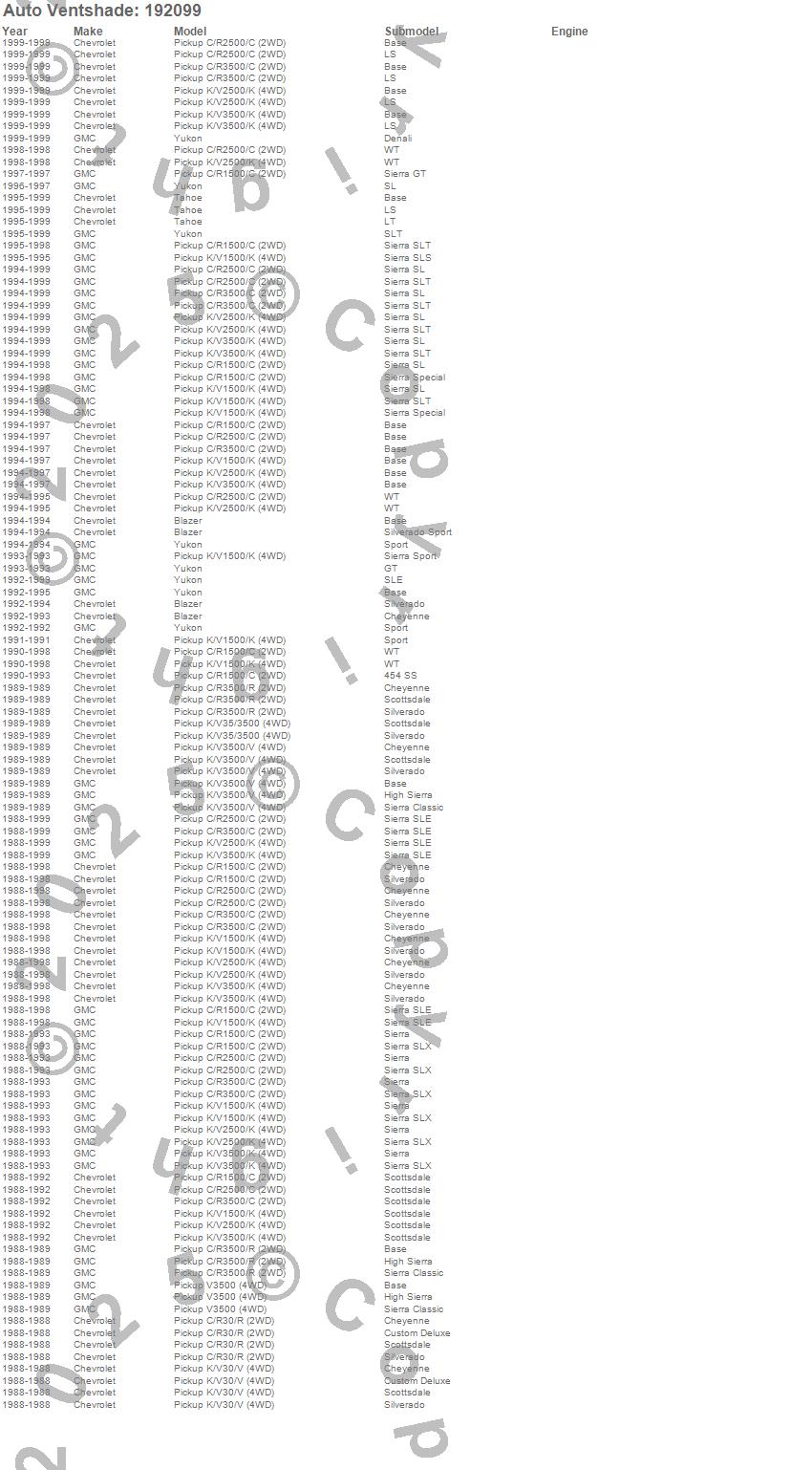 Blazer, C1500 Pickup, C2500 Pickup, C3500 Pickup, K1500, K1500 Pickup, K2500 Pickup, K3500 Pickup, R30 Pickup, R3500 Pickup, Tahoe, V30 Pickup, V3500 Pickup, Yukon, Chevrolet, GMC, 1999, 1998, 1997, 1996