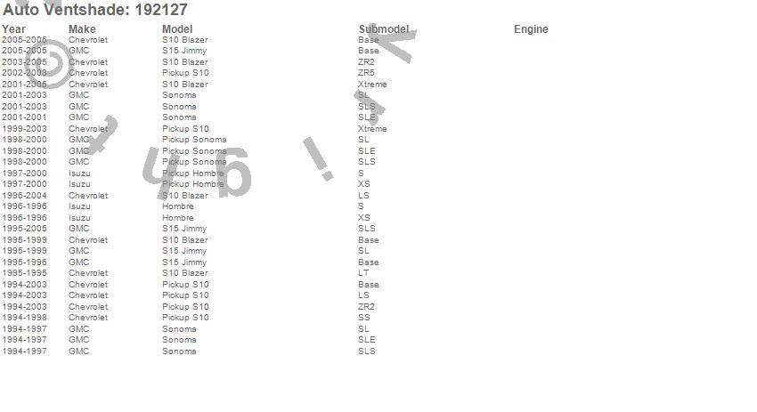 Hombre, S10 Blazer, S10 Pickup, S15 Jimmy, Sonoma, Chevrolet, GMC, Isuzu, 2005, 2004, 2003, 2002, 2001, 2000, 1999, 1998, 1997, 1996, 1995, 1994