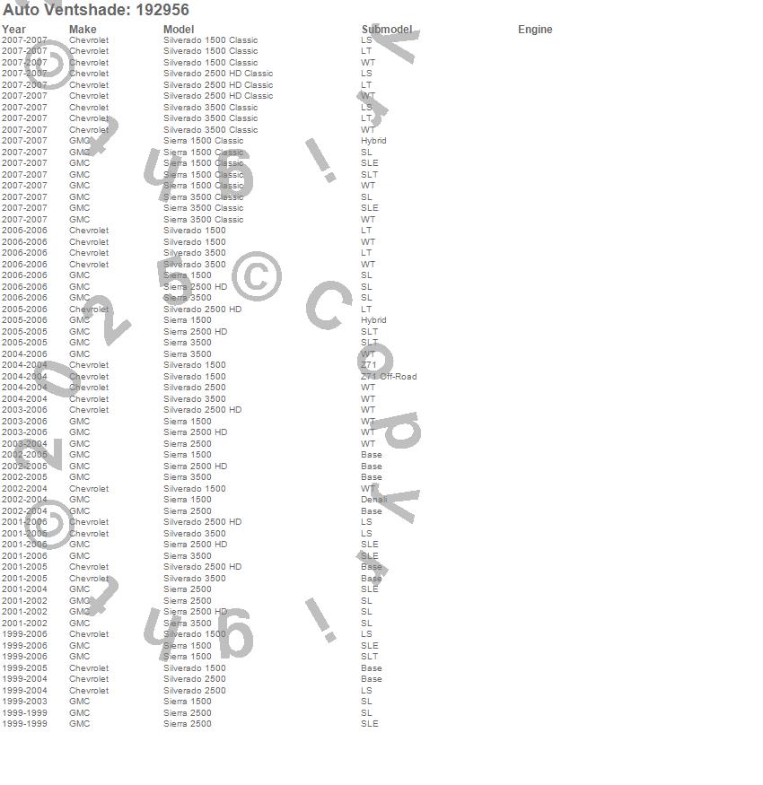 Below is an abbreviated list of applications for the Ventvisor In-Channel Deflector 2 pc..