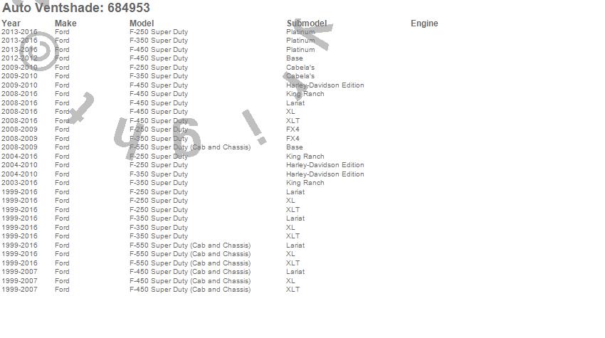 Below is an abbreviated list of applications for the Chrome Ventvisor Deflector 4 pc..