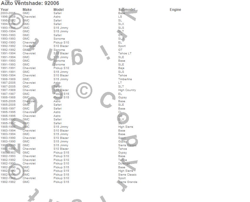 Below is an abbreviated list of applications for the Ventvisor Deflector 2 pc..