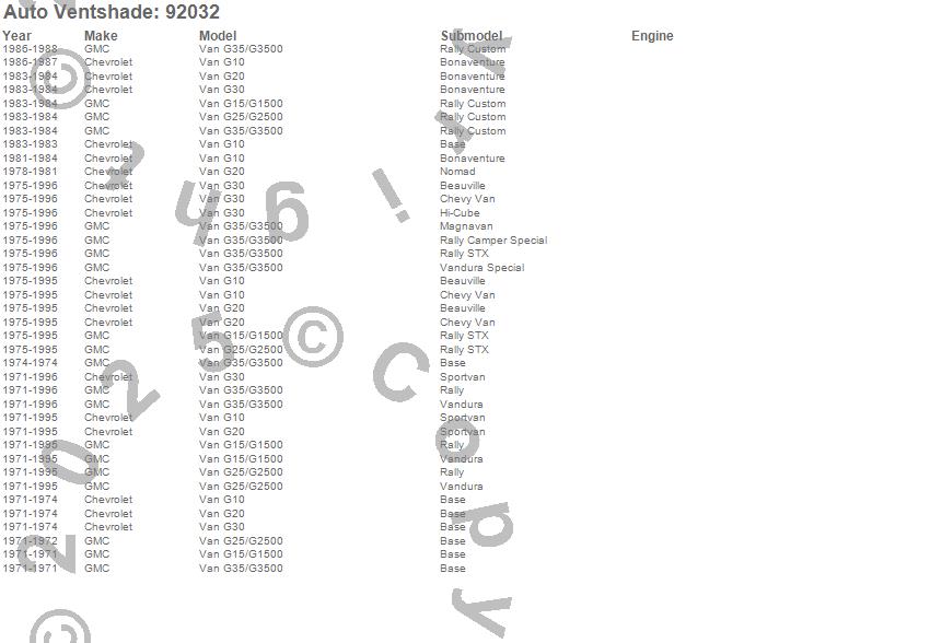 Below is an abbreviated list of applications for the Ventvisor Deflector 2 pc..