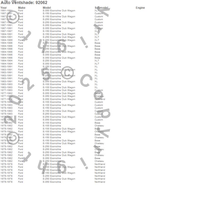 Below is an abbreviated list of applications for the Ventvisor Deflector 2 pc..