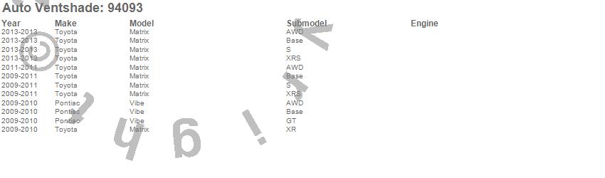 Below is an abbreviated list of applications for the Ventvisor Deflector 4 pc..