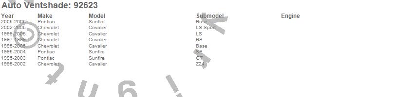 Below is an abbreviated list of applications for the Ventvisor Deflector 2 pc..