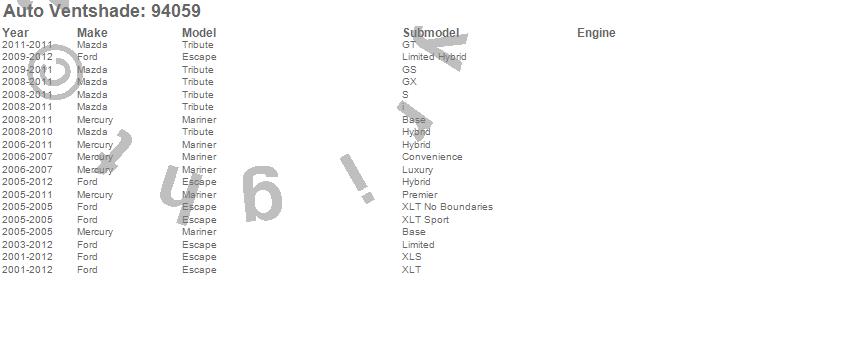 Below is an abbreviated list of applications for the Ventvisor Deflector 4 pc..