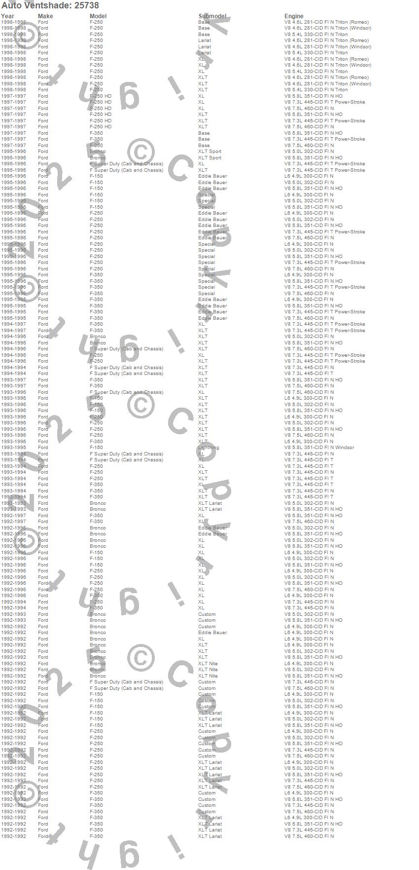 Bronco, F Super Duty, F-150, F-250, F-250 HD, F-350, Ford, 1998, 1997, 1996, 1995, 1994, 1993, 1992