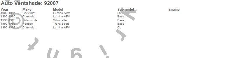 Below is an abbreviated list of applications for the Ventvisor Deflector 2 pc..