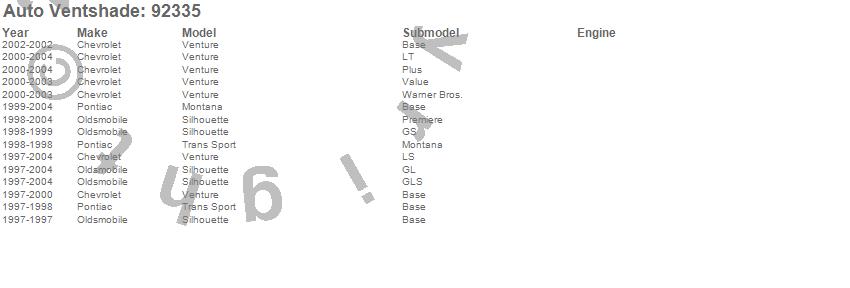 Below is an abbreviated list of applications for the Ventvisor Deflector 2 pc..