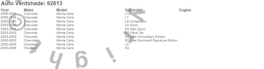 Below is an abbreviated list of applications for the Ventvisor Deflector 2 pc..