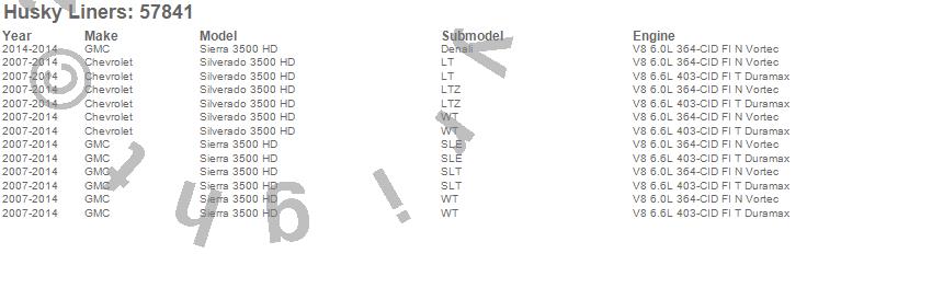 Husky Liners - Custom Molded Mud Guards P/N 57841 Features: