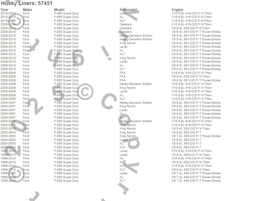 Husky Liners - Custom Molded Mud Guards P/N 57451 Features: