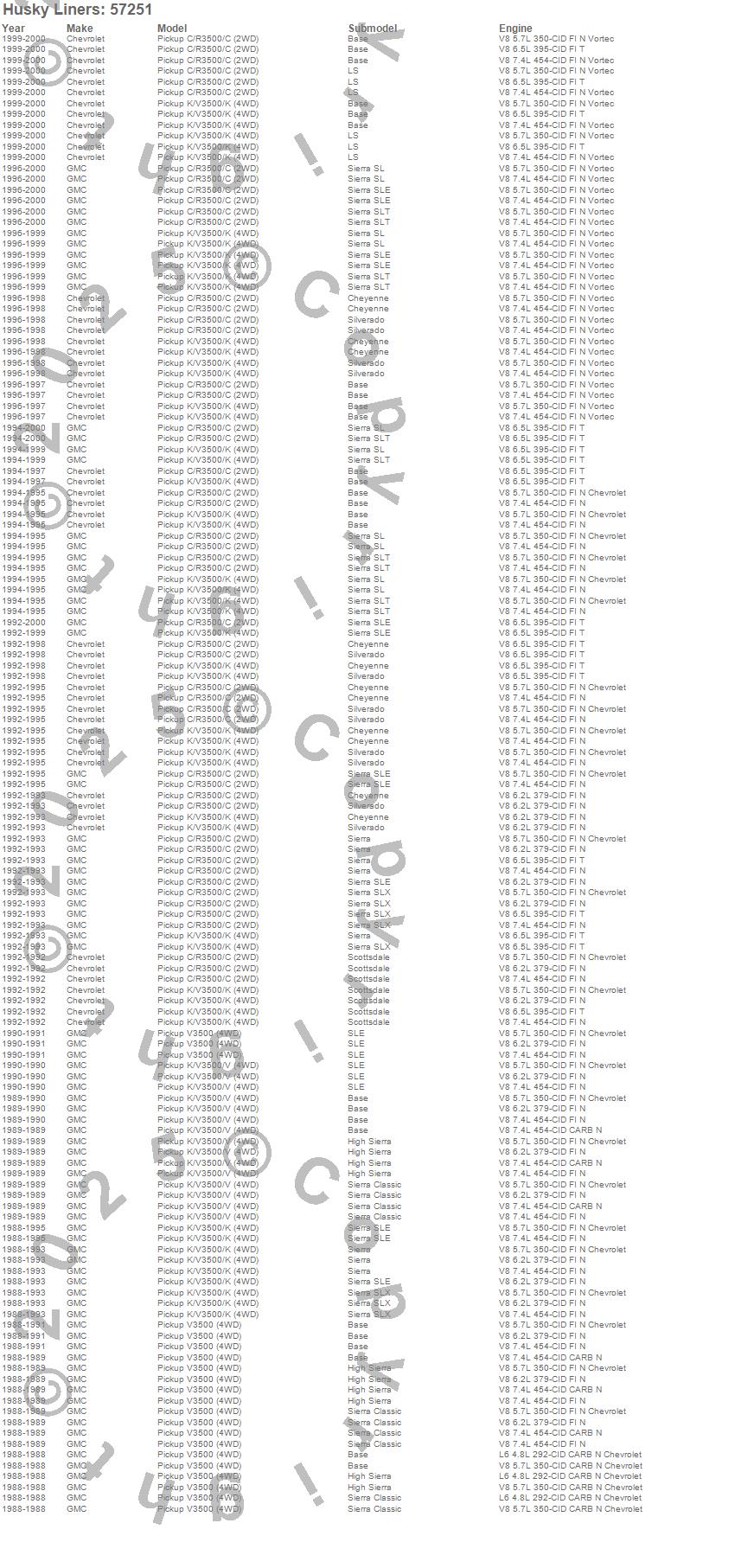 Below is an abbreviated list of applications for the Custom Molded Mud Guards.