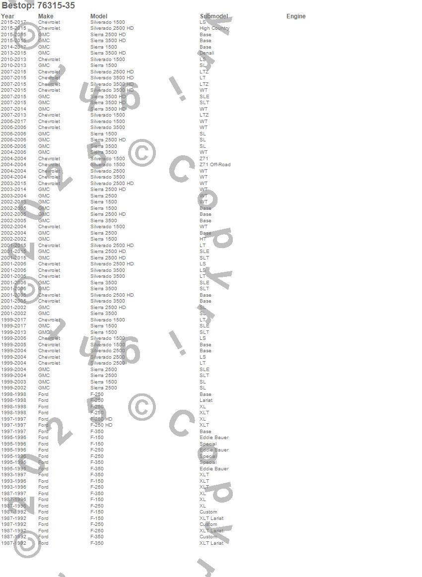 Below is an abbreviated list of applications for the Supertop Truck Bed Top.
