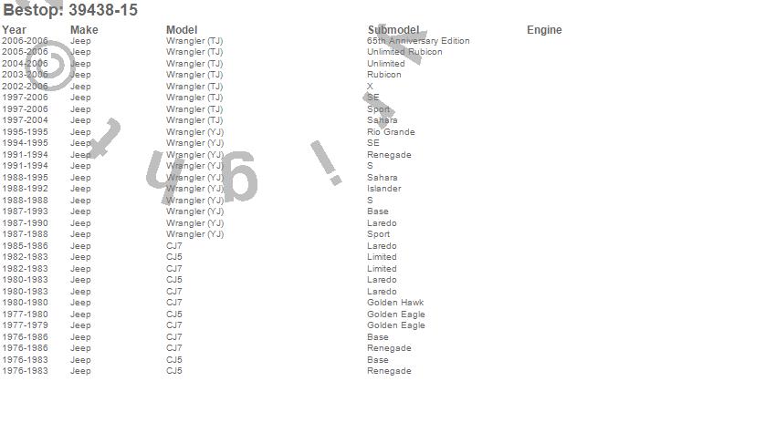 CJ5, CJ7, Wrangler (TJ), Wrangler (YJ), Jeep, 2006, 2005, 2004, 2003, 2002, 2001, 2000, 1999, 1998, 1997, 1995, 1994, 1993, 1992, 1991