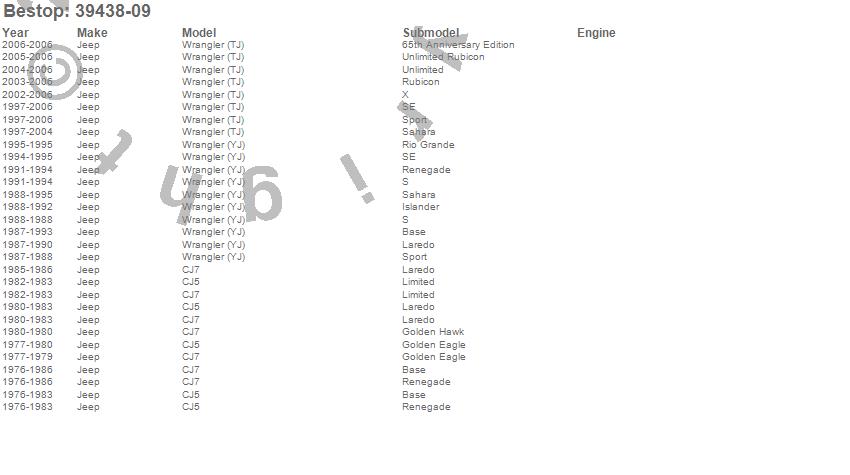 CJ5, CJ7, Wrangler (TJ), Wrangler (YJ), Jeep, 2006, 2005, 2004, 2003, 2002, 2001, 2000, 1999, 1998, 1997, 1995, 1994, 1993, 1992, 1991