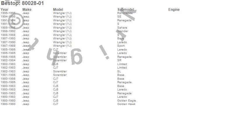 CJ5, CJ7, Scrambler, Wrangler (YJ), Jeep, 1995, 1994, 1993, 1992, 1991, 1990, 1989, 1988, 1987, 1986, 1985, 1984, 1983, 1982, 1981