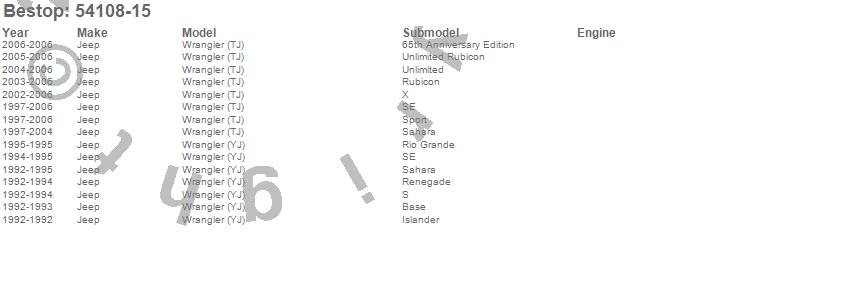 Wrangler (TJ), Wrangler (YJ), Jeep, 2006, 2005, 2004, 2003, 2002, 2001, 2000, 1999, 1998, 1997, 1995, 1994, 1993, 1992