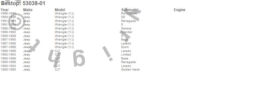 CJ7, Wrangler (YJ), Jeep, 1995, 1994, 1993, 1992, 1991, 1990, 1989, 1988, 1987, 1986, 1985, 1984, 1983, 1982, 1981, 1980
