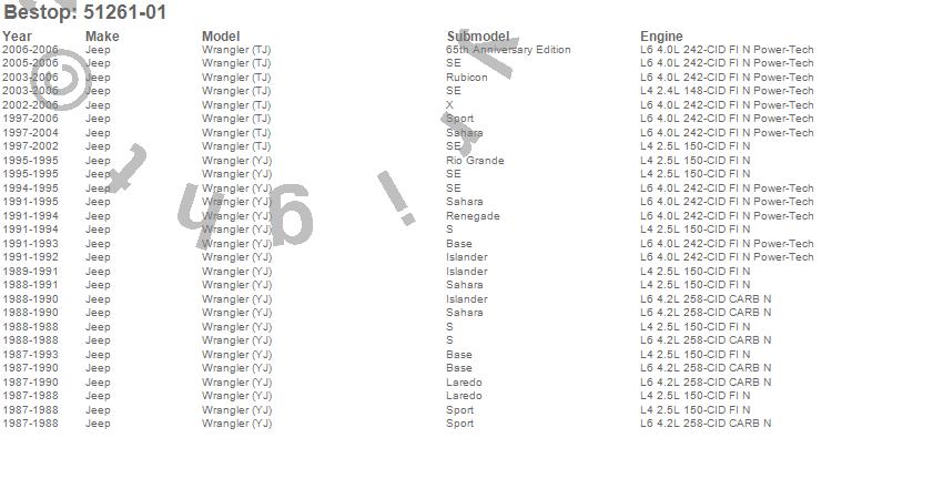 Wrangler (TJ), Wrangler (YJ), Jeep, 2006, 2005, 2004, 2003, 2002, 2001, 2000, 1999, 1998, 1997, 1995, 1994, 1993, 1992, 1991, 1990, 1989