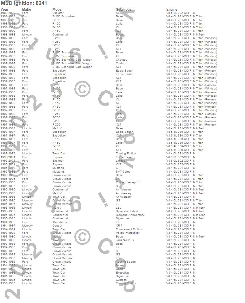 Continental, Cougar, Crown Victoria, E-150 Econoline, E-150 Econoline Club Wagon, Expedition, Explorer, F-150, F-250, Grand Marquis, Mark VIII, Mustang, Thunderbird, Town Car, Ford, Lincoln, Mercury, 2001, 2000, 1999
