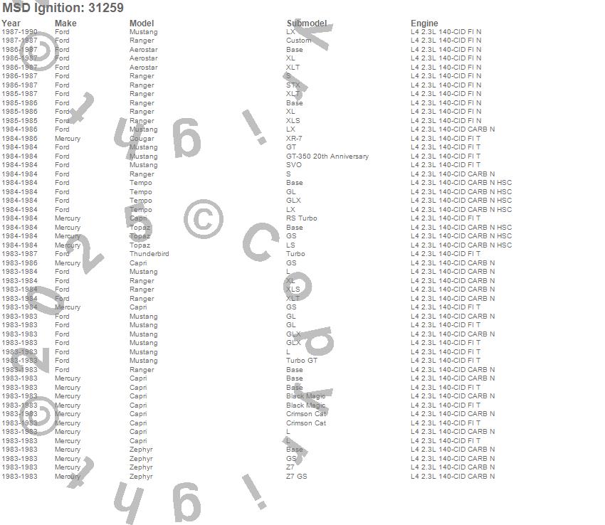 Aerostar, Capri, Cougar, Mustang, Ranger, Tempo, Thunderbird, Topaz, Zephyr, Ford, Mercury, 1990, 1989, 1988, 1987, 1986, 1985, 1984, 1983