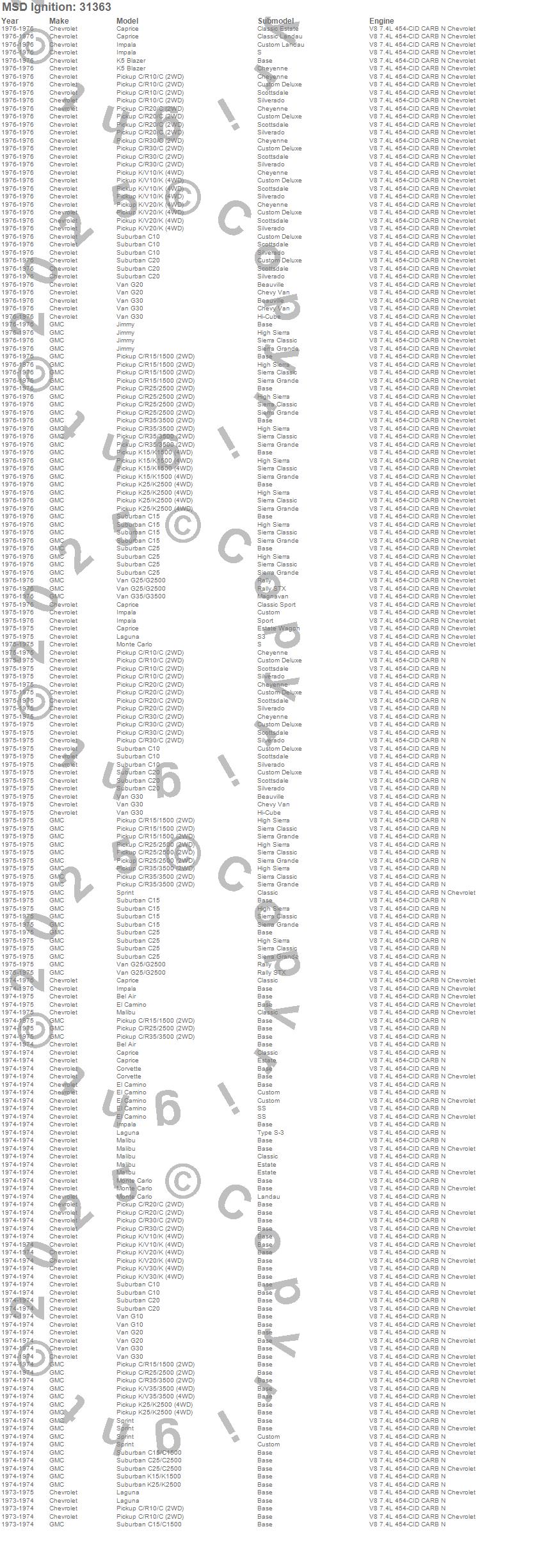 Bel Air, C10 Pickup, C10 Suburban, C15 Suburban, C15/C1500 Suburban, C1500 Pickup, C20 Pickup, C20 Suburban, C25 Suburban, C25/C2500 Pickup, C25/C2500 Suburban, C30 Pickup, C35/C3500 Pickup, Caprice, Corvette, El Camino, G10 Van, G20 Van, G25/G2500 Van, G30 Van