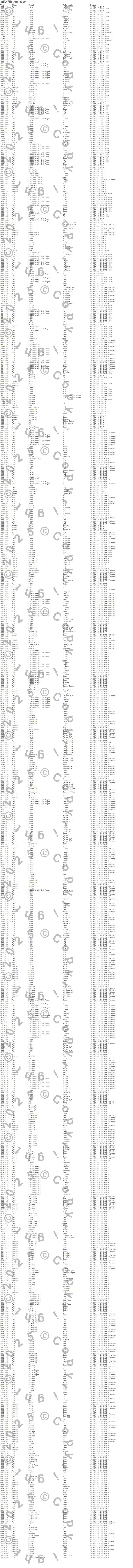 Bronco, Caliente, Capri, Colony Park, Comet, Commuter, Continental, Cougar, Country Sedan, Country Squire, Custom, Custom 500, Cyclone, E-100 Econoline, E-100 Econoline Club Wagon, E-150 Econoline, E-150 Econoline Club Wagon, E-200 Econoline, E-250 Econoline, E-250 Econoline Club Wagon